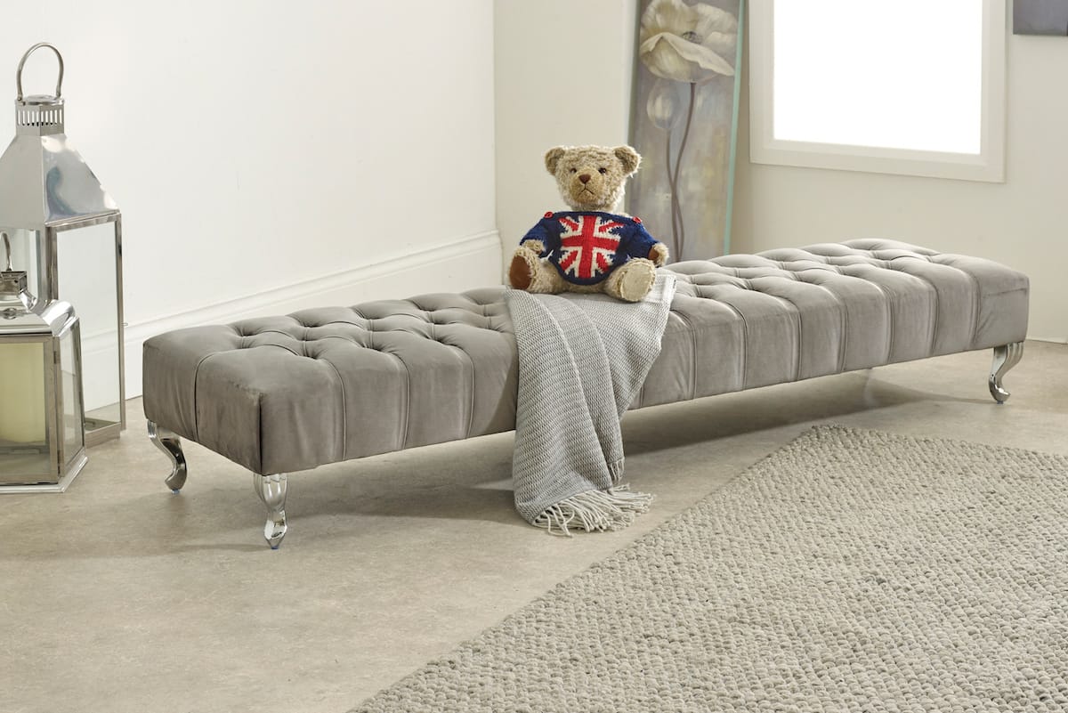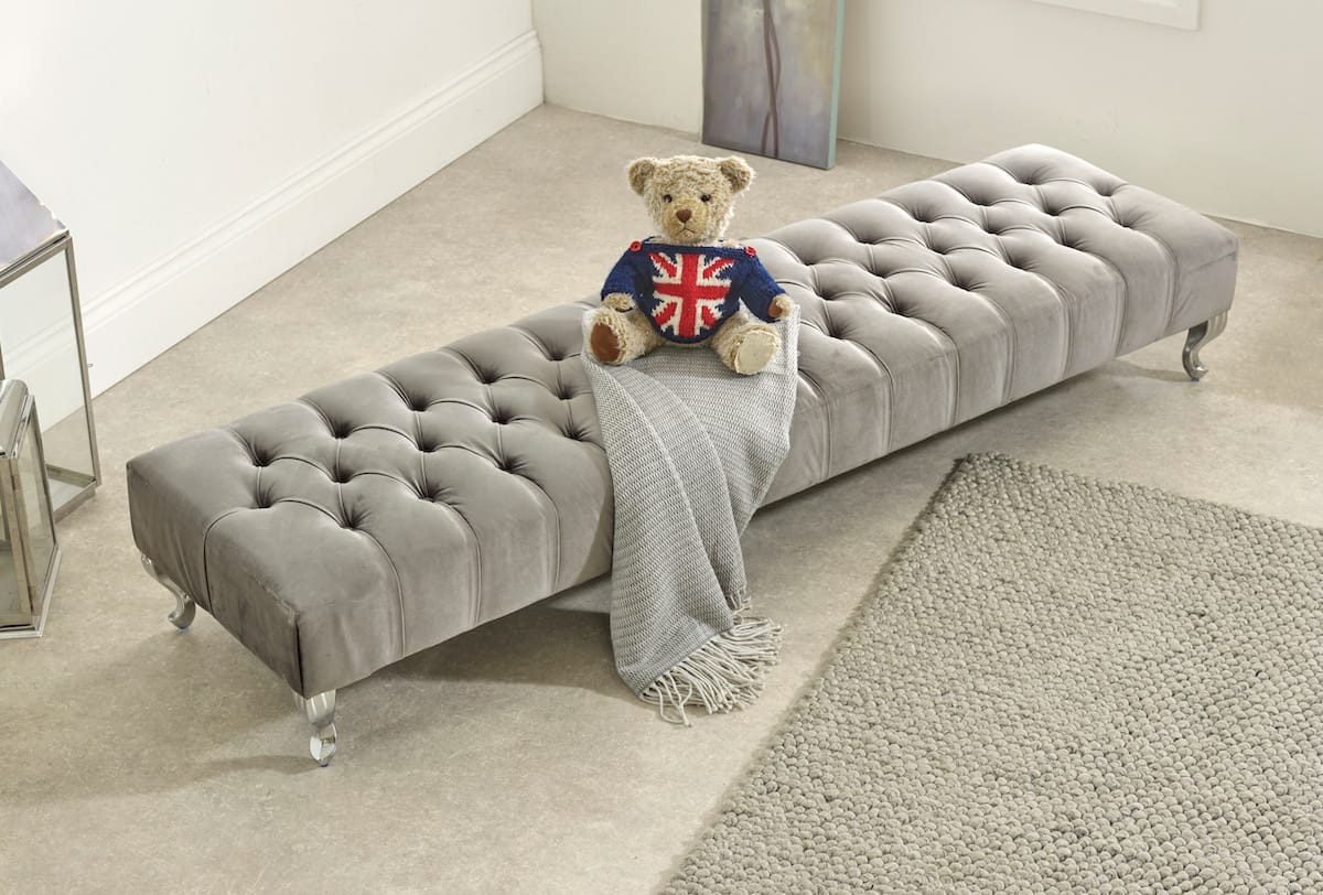 Luxurious Fabric Options: Wrapped in Grey plush velvet fabric, the Escabel footstool radiates opulence and comfort. However, it’s also available in a variety of other fabrics and colours, allowing you to customise it to suit your personal style and preferences.