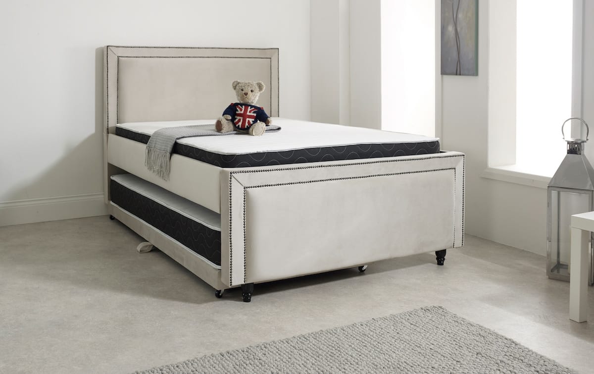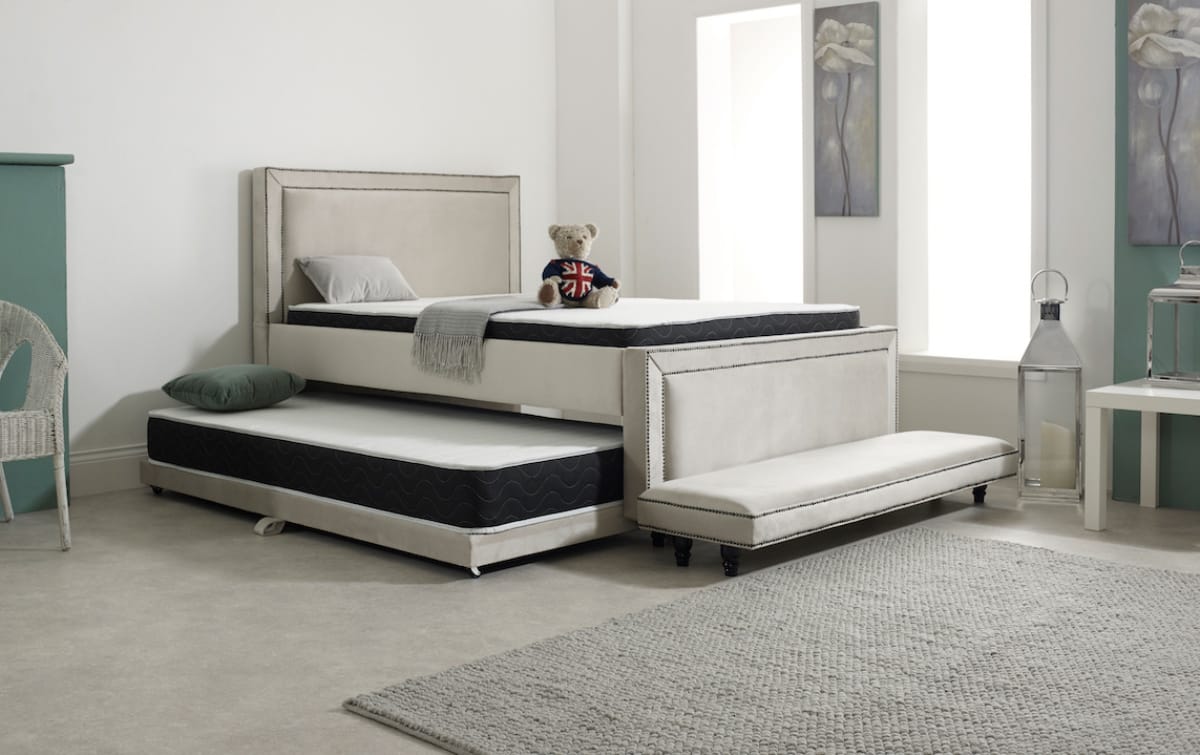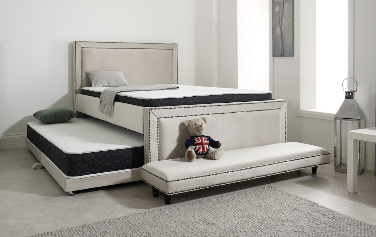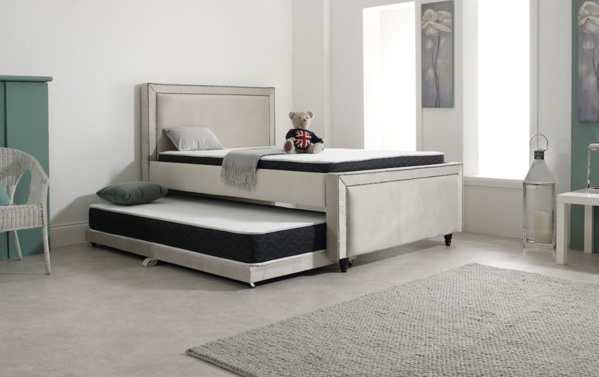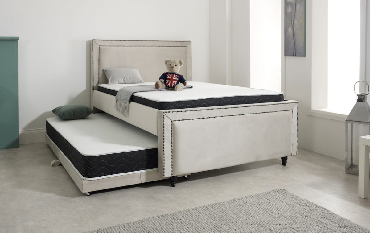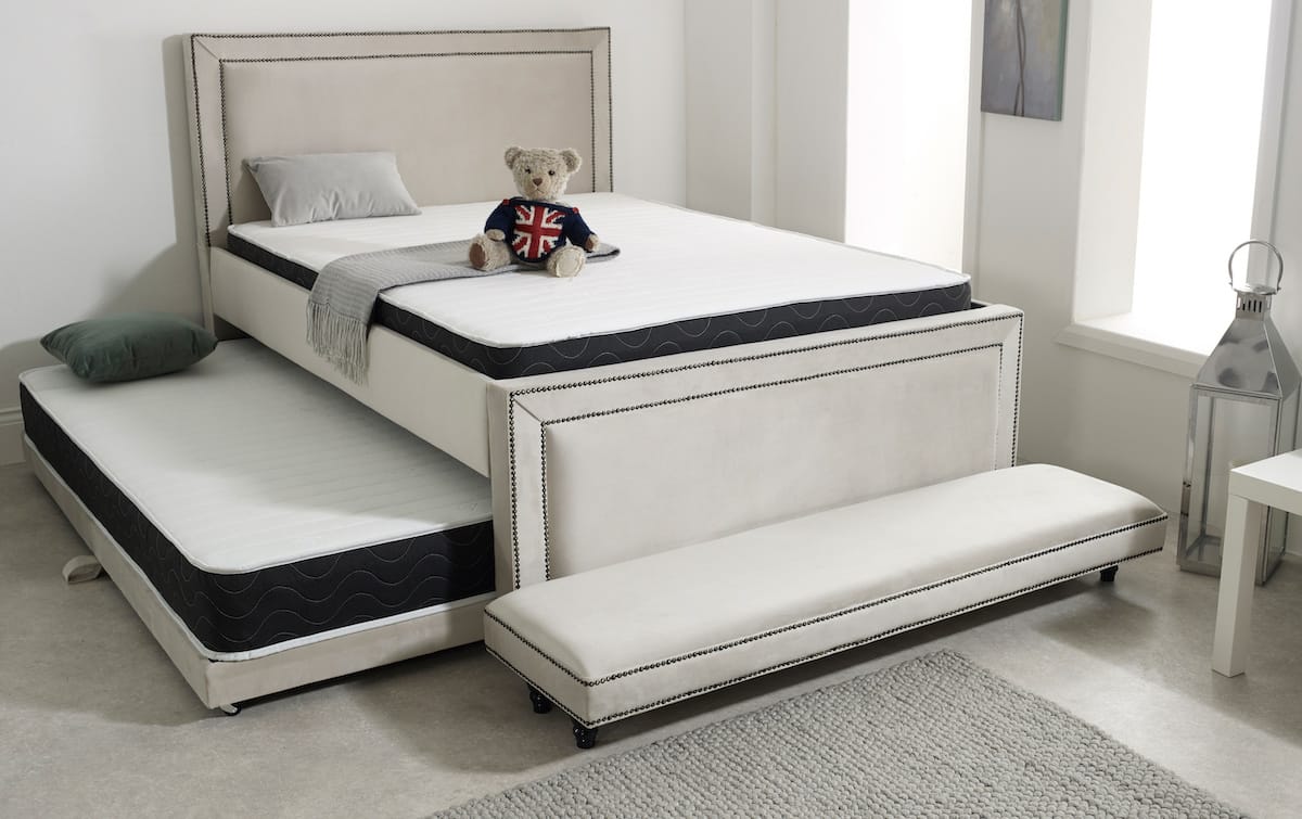 Perfect Fit for UK Standard Mattresses: The Kerry Saver Trundle Guest Bed accommodates UK standard size mattresses (two required, sold separately). The trundle needs to have a 7 inch thick mattress or smaller. Explore our range of mattresses at plushfurniture.co.uk for the perfect fit and ultimate comfort.