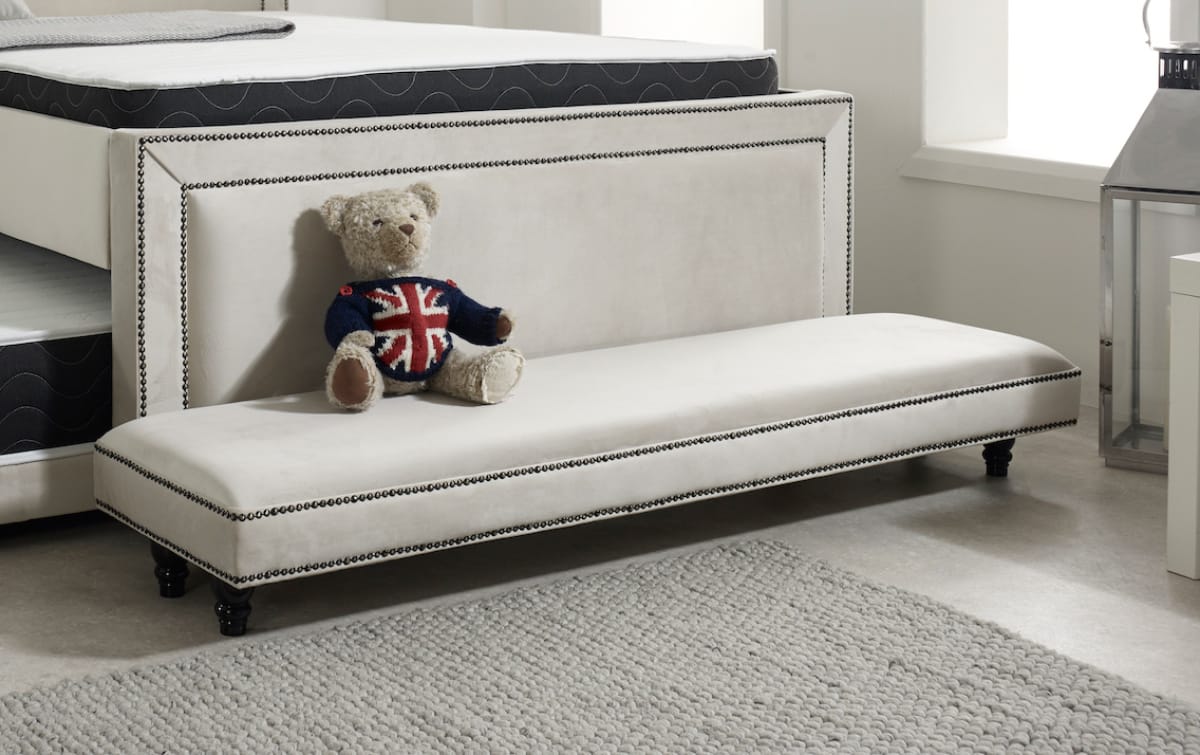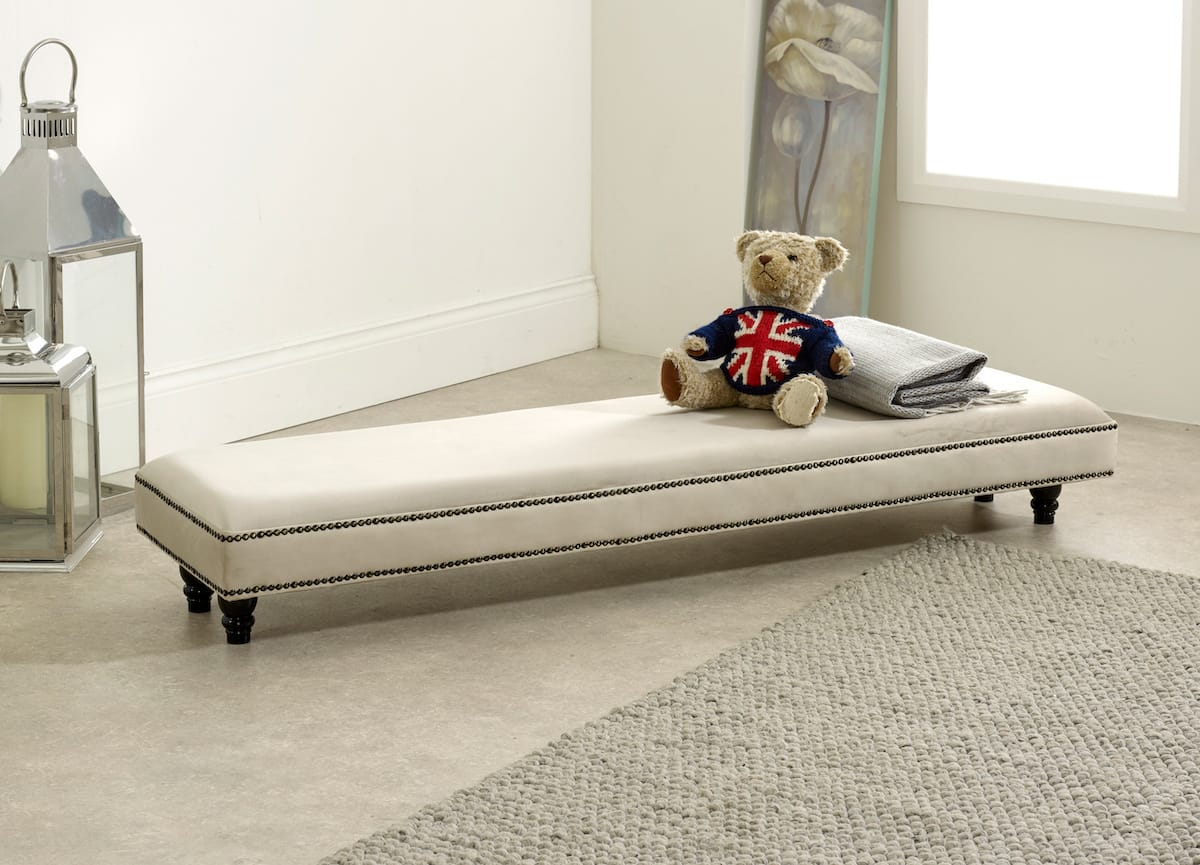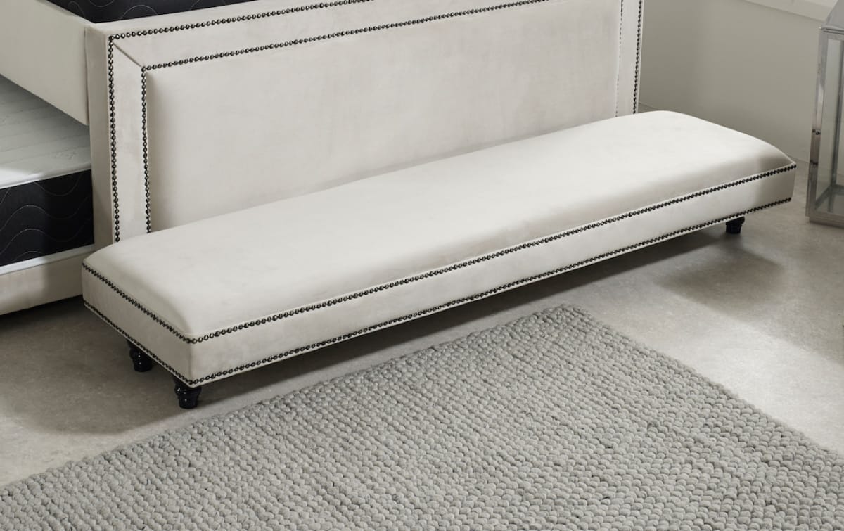 Luxurious Fabric Options: Finished in Ivory/Cream plush velvet fabric, the Kerry footstool exudes opulence and comfort. However, it’s also available in a range of other fabrics and colours, ensuring you can customise it to complement your existing décor seamlessly.