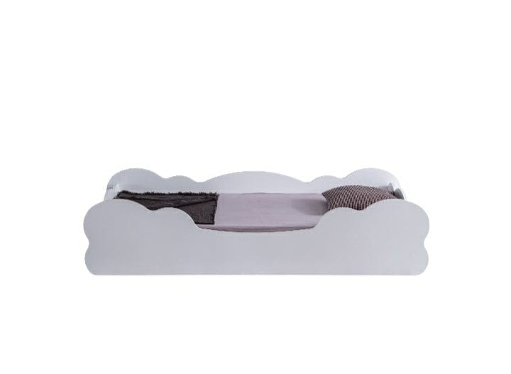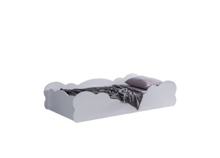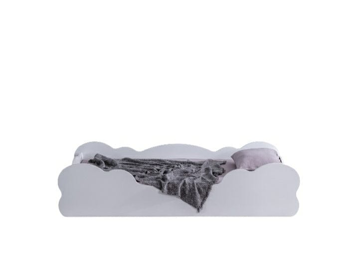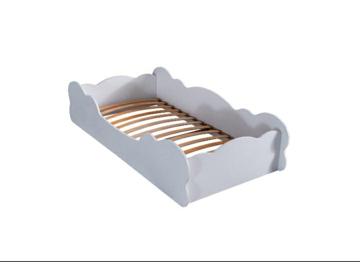 The bed is built to extremely high quality with a full slatted bed frame, made from chipboard and finished in white gloss which features cloud shaped design on both sides.