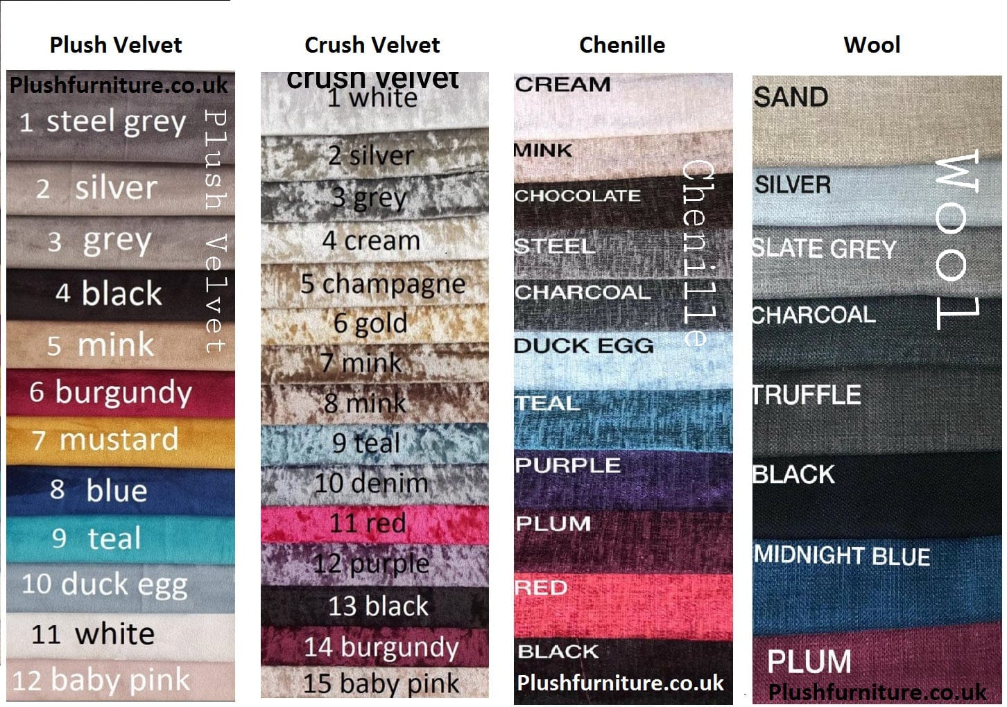 - Manufactured in Great Britain Wrapped in a choice of Crushed Velvet, Plush or Chenille