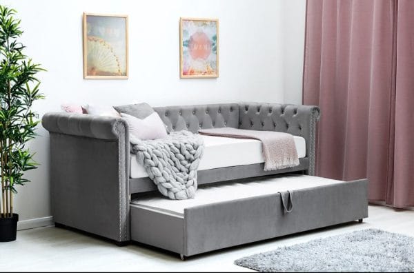 LUXURY UPHOLSTERED PARKER CHESTERFIELD SOFA DAY BED WITH TRUNDLE BED