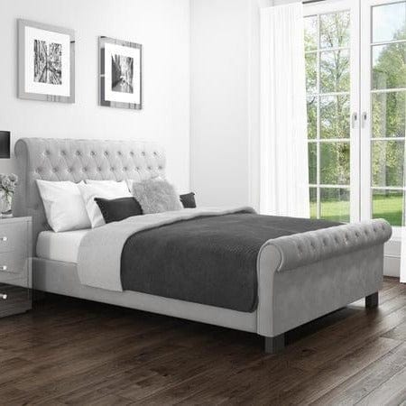 Sleigh-Inspired Opulence: The Safina Roll Top Sleigh Bed Frame brings regal sophistication to your kingdom, adorned with exquisite chesterfield style on both the headboard and footboard. This timeless design transforms your bedroom into a sanctuary fit for royalty.