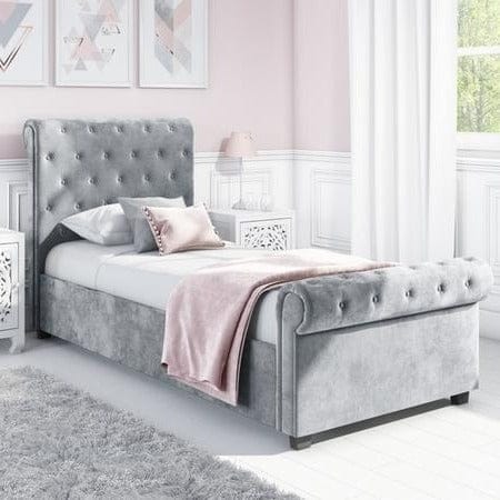 Step into the realm of royal dreams with the Safina Roll Top Sleigh Bed Frame – a masterpiece meticulously handcrafted to order in our UK-based factory. This isn’t merely a bed; it’s an opulent throne designed for modern princes and princesses, marrying timeless chesterfield elegance with contemporary luxury.