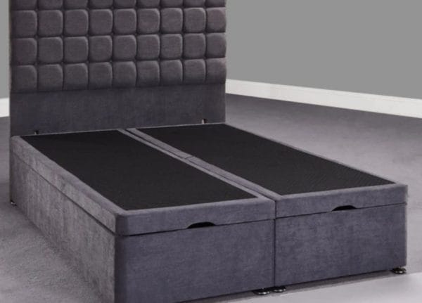 LUXURY UPHOLSTERED ALEXA OTTOMAN BED WITH CUBED DESIGN HEADBOARD